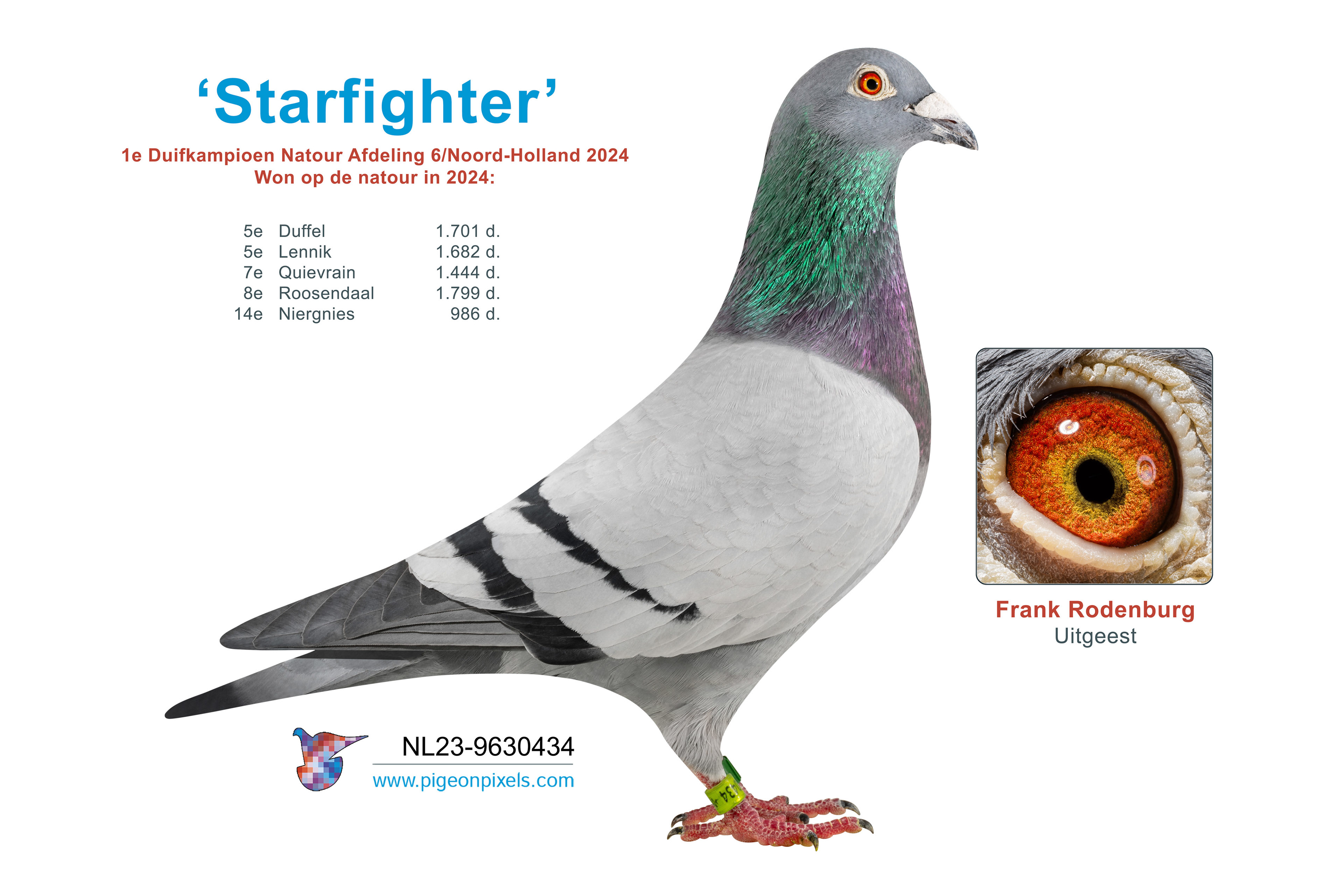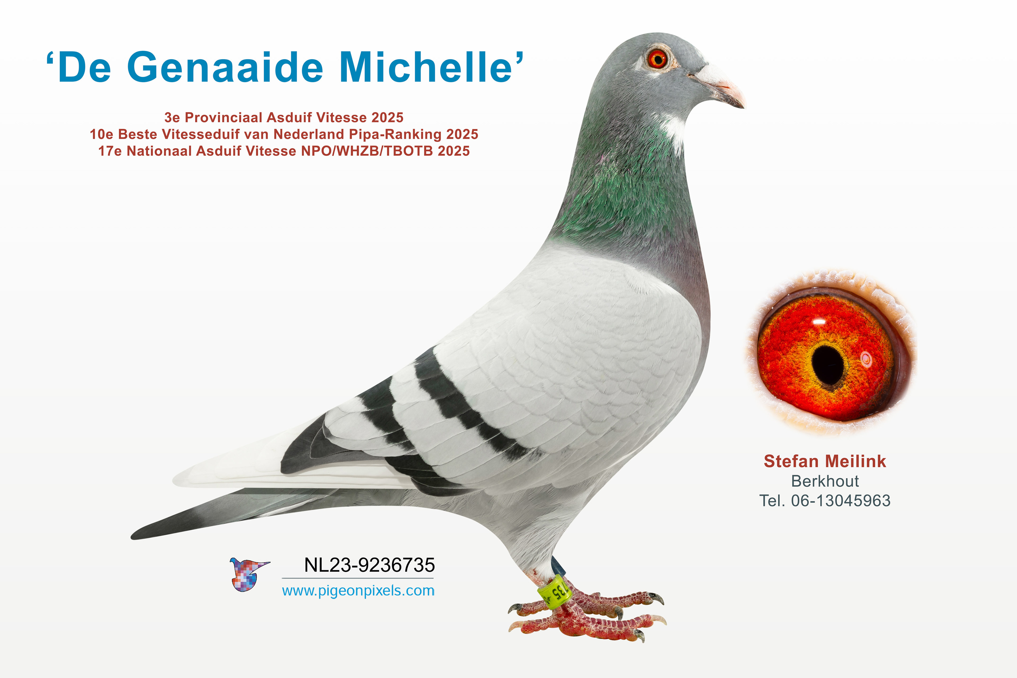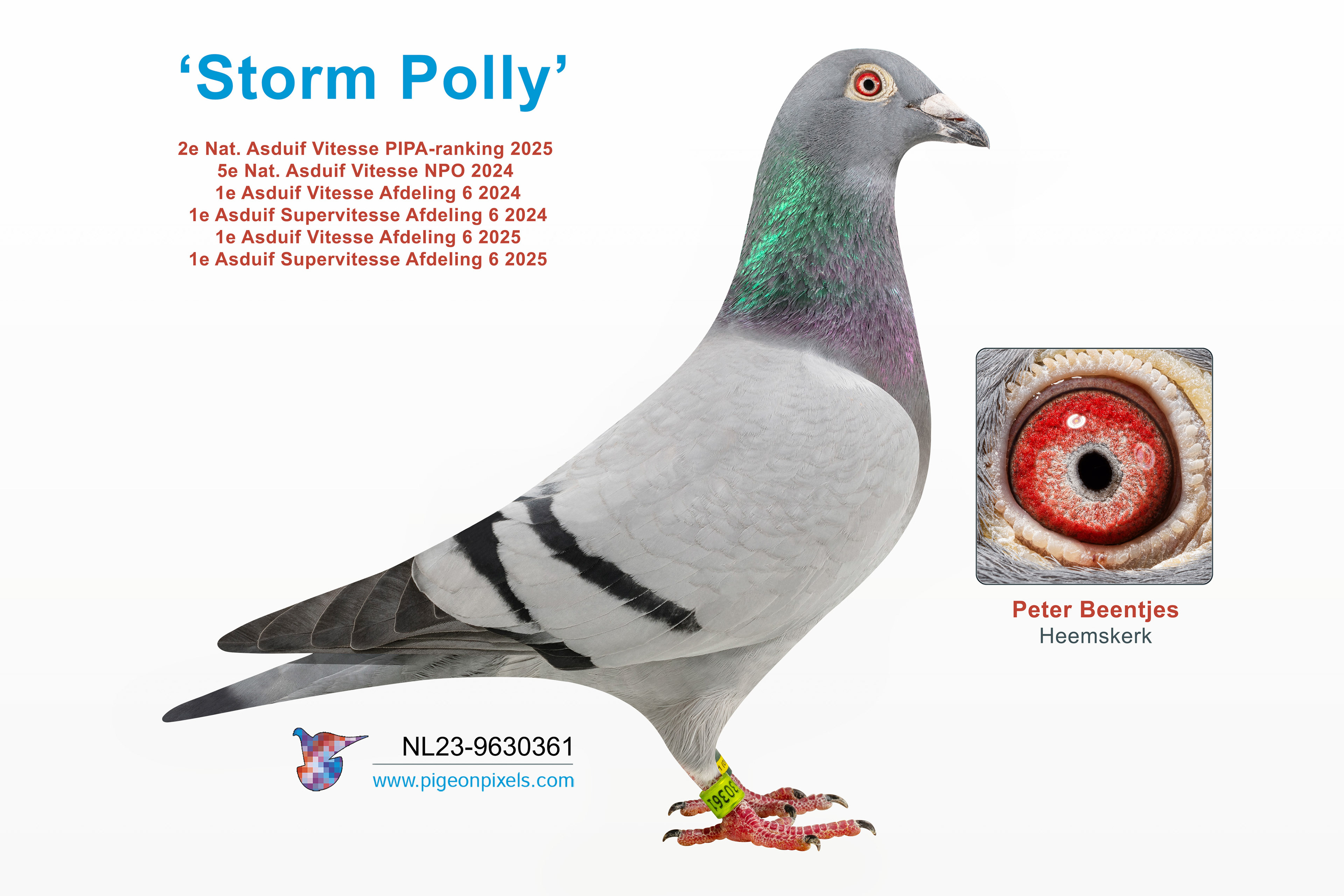 Deze website toont commerciële duivenfotografie, bedoeld voor praktisch en representatief gebruik binnen de duivensport. De duiven worden gefotografeerd in een studio-opstelling en digitaal uitgeknipt, zoals binnen de sector gebruikelijk is. De beelden zijn zorgvuldig nabewerkt. Kleurweergave, contrast en scherpte worden geoptimaliseerd om een helder en uniform eindresultaat te leveren dat geschikt is voor verkooplijsten, catalogi, advertenties en online publicaties.